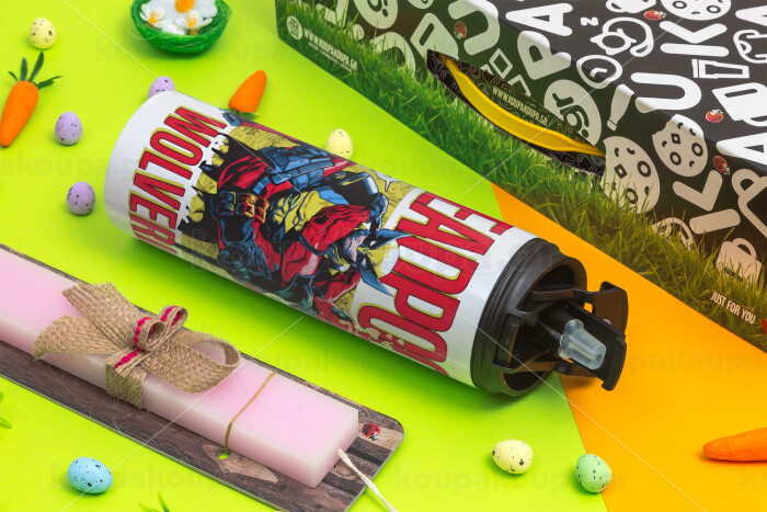 Superhero Deadpool Wolverine, Easter candle,Travel Tumbler 2 Lids, with metal straw & cleaning brush & aromatic flat candle (30cm) (PINK)