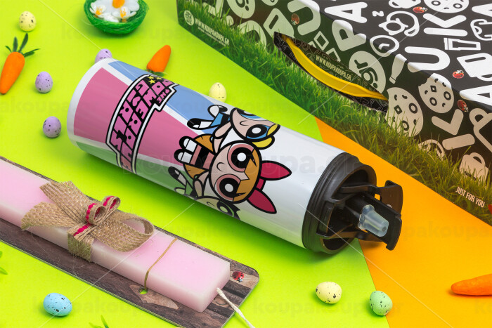 The powerpuff girls , Easter candle,Travel Tumbler 2 Lids, with metal straw & cleaning brush & aromatic flat candle (30cm) (PINK)