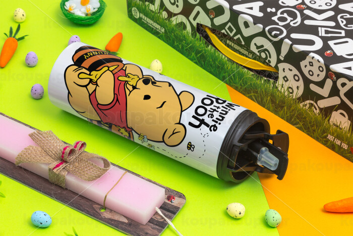 Winnie the Pooh, Easter candle,Travel Tumbler 2 Lids, with metal straw & cleaning brush & aromatic flat candle (30cm) (PINK)