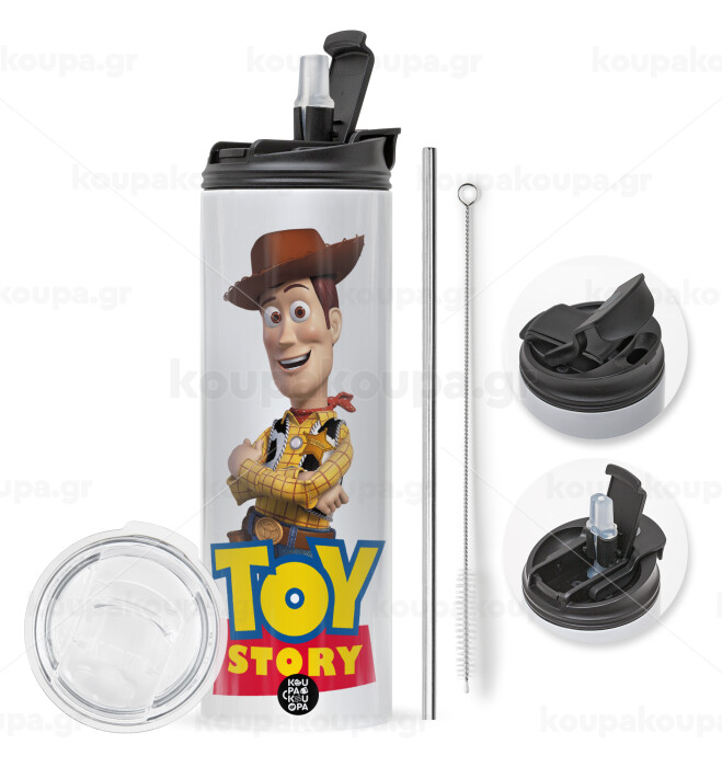 Woody cowboy, Easter candle,Travel Tumbler 2 Lids, with metal straw & cleaning brush & aromatic flat candle (30cm) (PINK)