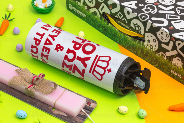 Σούζυ και ψεύδεσαι και τρως, Easter candle,Travel Tumbler 2 Lids, with metal straw & cleaning brush & aromatic flat candle (30cm) (PINK)