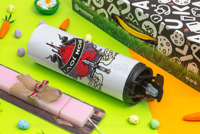 Bon Jovi, Easter candle,Travel Tumbler 2 Lids, with metal straw & cleaning brush & aromatic flat candle (30cm) (PINK)