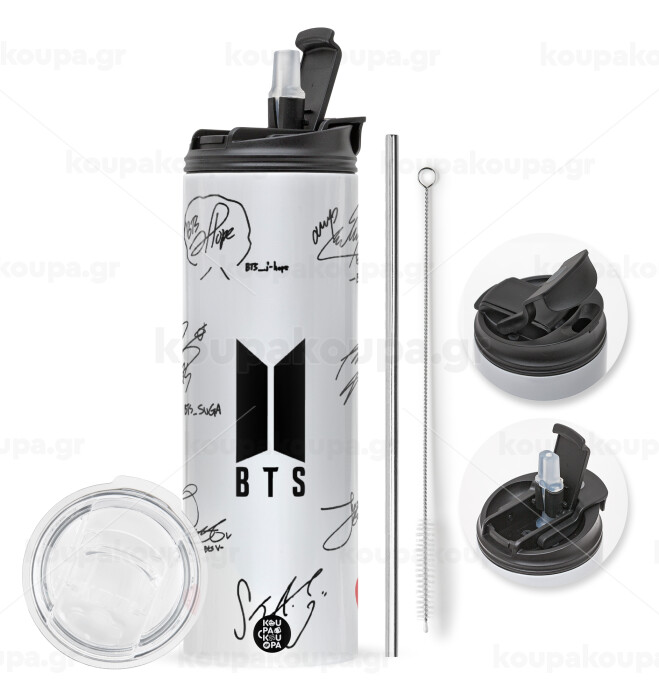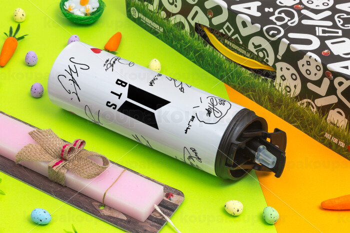 BTS signatures, Easter candle,Travel Tumbler 2 Lids, with metal straw & cleaning brush & aromatic flat candle (30cm) (PINK)