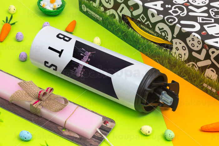 BTS, Easter candle,Travel Tumbler 2 Lids, with metal straw & cleaning brush & aromatic flat candle (30cm) (PINK)