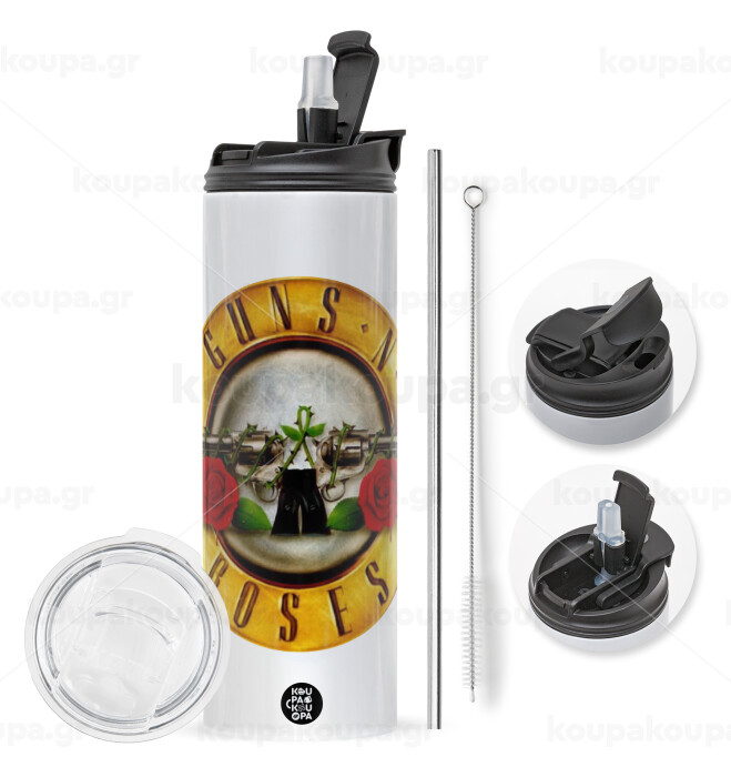 Guns N' Roses, Easter candle,Travel Tumbler 2 Lids, with metal straw & cleaning brush & aromatic flat candle (30cm) (PINK)