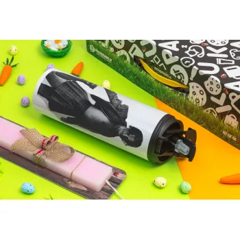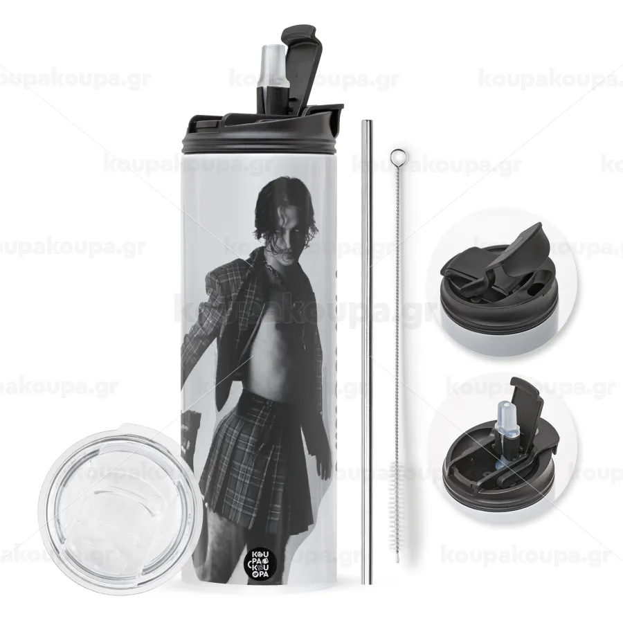 Maneskin Damiano David, Easter candle,Travel Tumbler 2 Lids, with metal straw & cleaning brush & aromatic flat candle (30cm) (PINK)