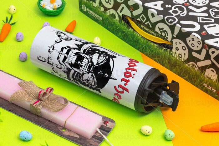 motorhead, Easter candle,Travel Tumbler 2 Lids, with metal straw & cleaning brush & aromatic flat candle (30cm) (PINK)