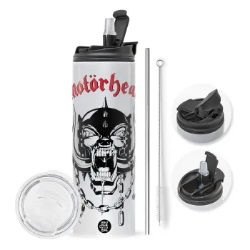 motorhead, Easter candle,Travel Tumbler 2 Lids, with metal straw & cleaning brush & aromatic flat candle (30cm) (PINK)