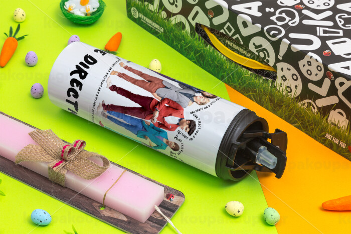 One Direction , Easter candle,Travel Tumbler 2 Lids, with metal straw & cleaning brush & aromatic flat candle (30cm) (PINK)