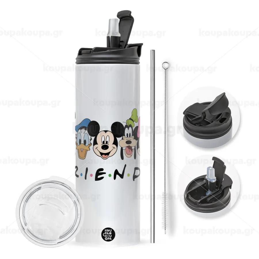 Friends characters, Easter candle,Travel Tumbler 2 Lids, with metal straw & cleaning brush & aromatic flat candle (30cm) (PINK)