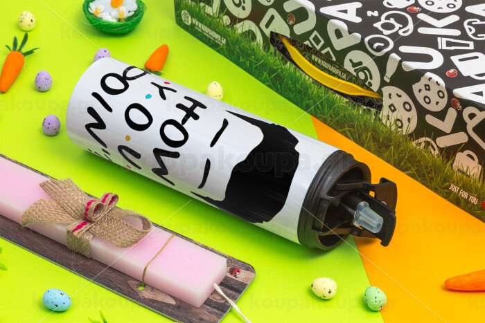 Friends how you doin?, Easter candle,Travel Tumbler 2 Lids, with metal straw & cleaning brush & aromatic flat candle (30cm) (PINK)