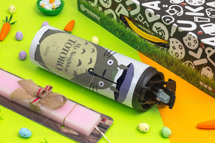 Totoro from My Neighbor Totoro, Easter candle,Travel Tumbler 2 Lids, with metal straw & cleaning brush & aromatic flat candle (30cm) (PINK)