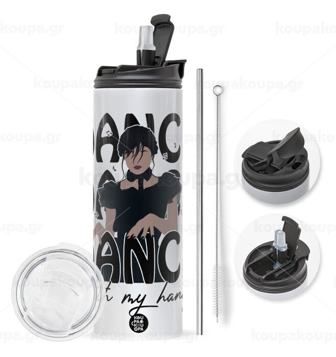 Wednesday dance dance dance, Easter candle,Travel Tumbler 2 Lids, with metal straw & cleaning brush & aromatic flat candle (30cm) (PINK)