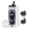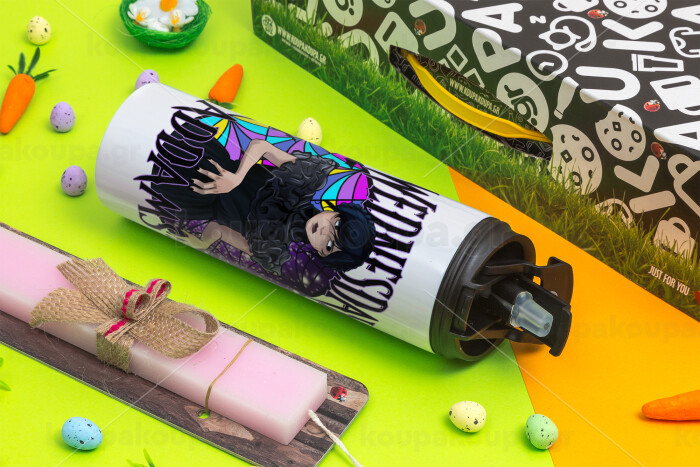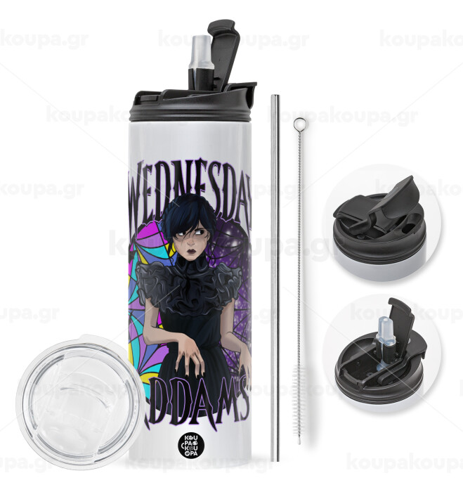 Wednesday Jenna Ortega, Easter candle,Travel Tumbler 2 Lids, with metal straw & cleaning brush & aromatic flat candle (30cm) (PINK)