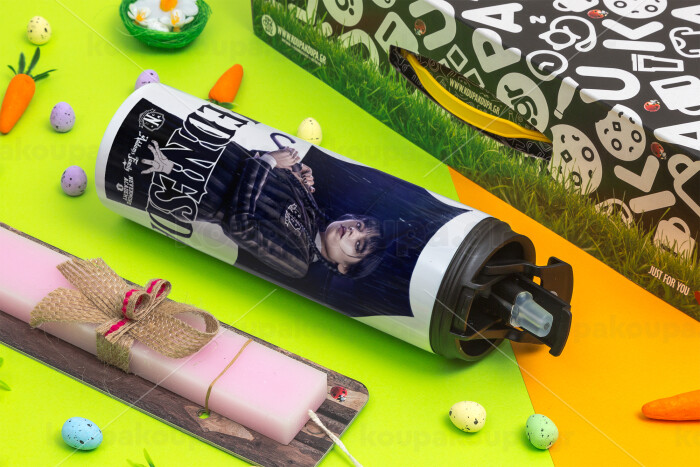 Wednesday rain, Easter candle,Travel Tumbler 2 Lids, with metal straw & cleaning brush & aromatic flat candle (30cm) (PINK)