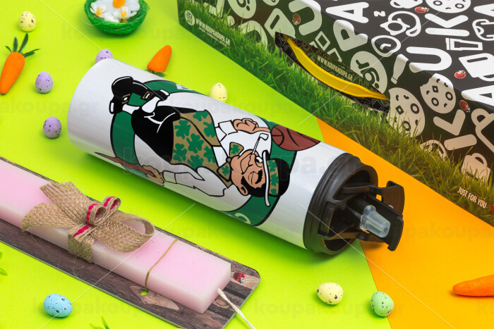Boston Celtics, Easter candle,Travel Tumbler 2 Lids, with metal straw & cleaning brush & aromatic flat candle (30cm) (PINK)