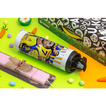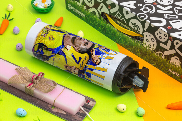 Cristiano Ronaldo Al Nassr, Easter candle,Travel Tumbler 2 Lids, with metal straw & cleaning brush & aromatic flat candle (30cm) (PINK)