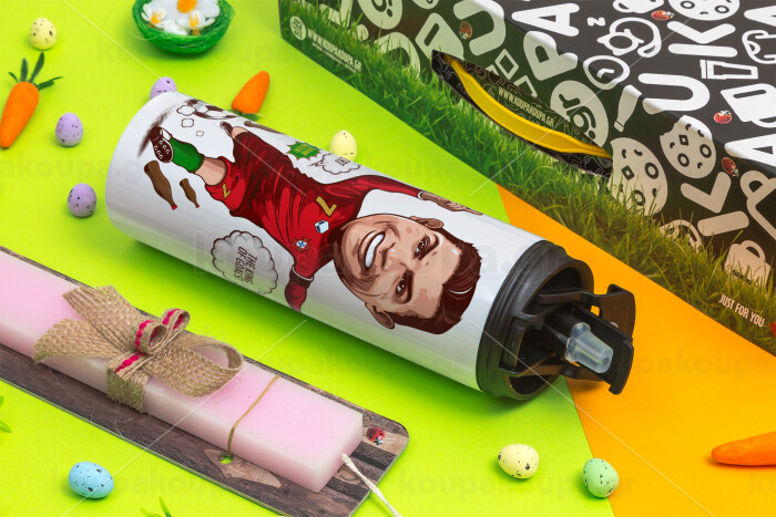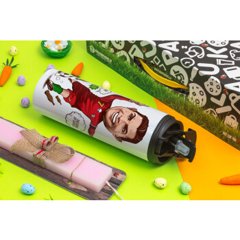 Cristiano Ronaldo, Easter candle,Travel Tumbler 2 Lids, with metal straw & cleaning brush & aromatic flat candle (30cm) (PINK)