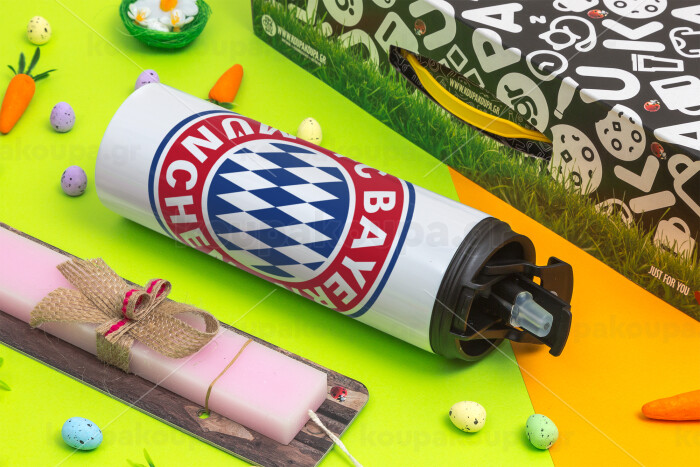 FC Bayern Munich, Easter candle,Travel Tumbler 2 Lids, with metal straw & cleaning brush & aromatic flat candle (30cm) (PINK)