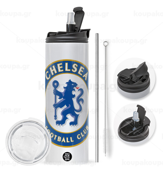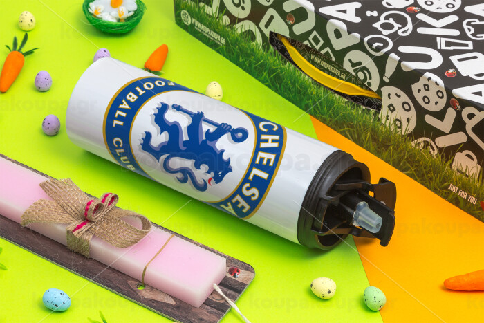 FC Chelsea, Easter candle,Travel Tumbler 2 Lids, with metal straw & cleaning brush & aromatic flat candle (30cm) (PINK)