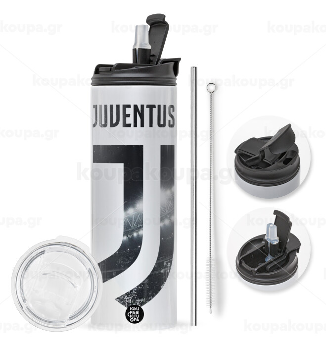 FC Juventus, Easter candle,Travel Tumbler 2 Lids, with metal straw & cleaning brush & aromatic flat candle (30cm) (PINK)