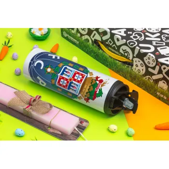 FCP, Easter candle,Travel Tumbler 2 Lids, with metal straw & cleaning brush & aromatic flat candle (30cm) (PINK)