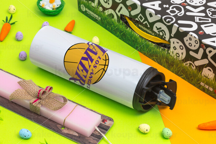 Lakers, Easter candle,Travel Tumbler 2 Lids, with metal straw & cleaning brush & aromatic flat candle (30cm) (PINK)