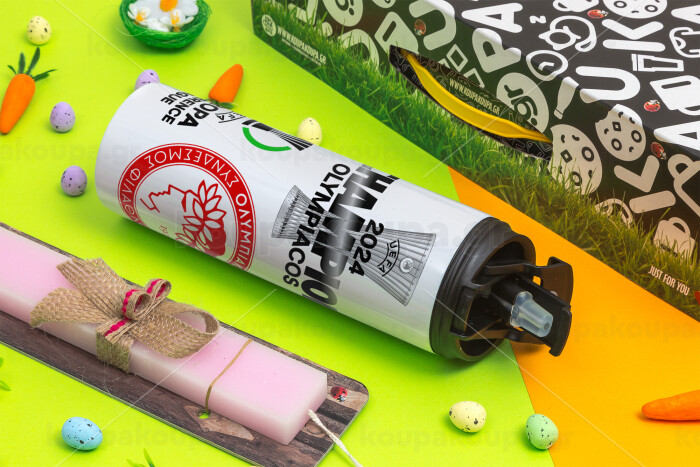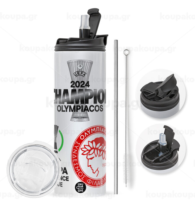 Olympiacos UEFA Europa Conference League Champion 2024, Easter candle,Travel Tumbler 2 Lids, with metal straw & cleaning brush & aromatic flat candle (30cm) (PINK)