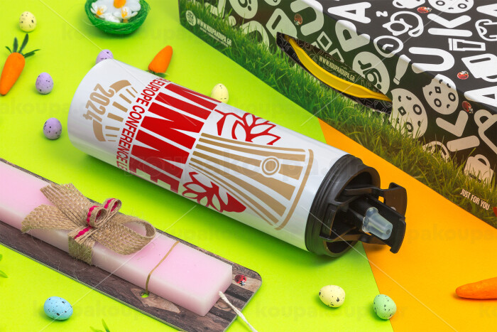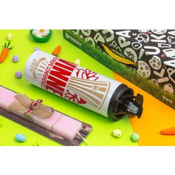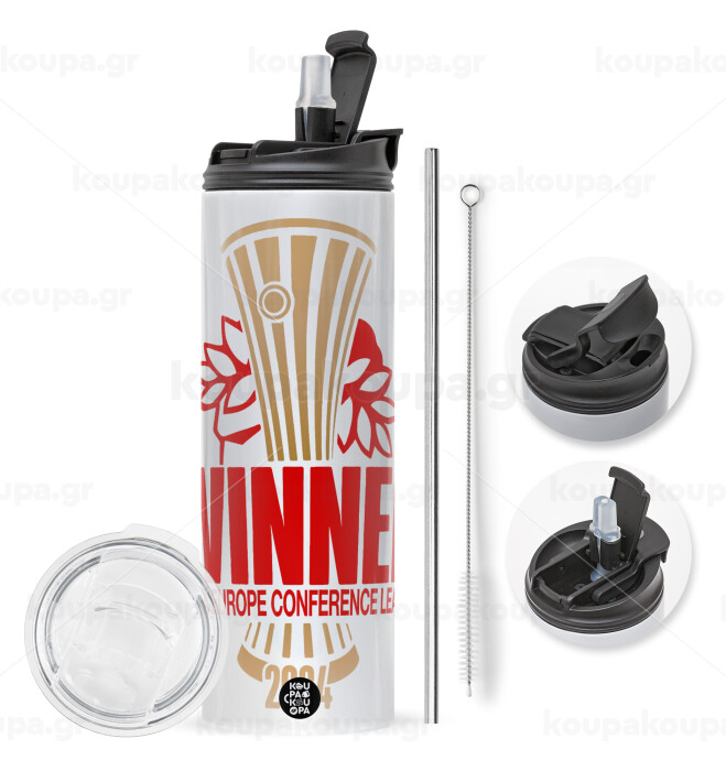 Europa Conference League WINNER, Easter candle,Travel Tumbler 2 Lids, with metal straw & cleaning brush & aromatic flat candle (30cm) (PINK)