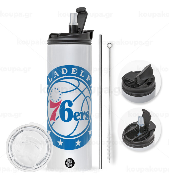 Philadelphia 76ers, Easter candle,Travel Tumbler 2 Lids, with metal straw & cleaning brush & aromatic flat candle (30cm) (PINK)