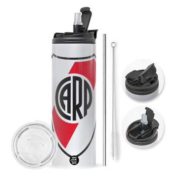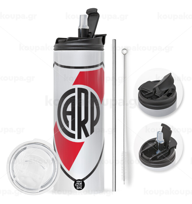 River Plate, Easter candle,Travel Tumbler 2 Lids, with metal straw & cleaning brush & aromatic flat candle (30cm) (PINK)