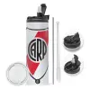 Eco friendly hot glass 600ml with metal reusable straw. Enjoy your favorite drink at any moment in this unique ecological thermos. It maintains the temperature for several hours and is made of stainless steel. Suitable for hot and cold drinks. Comes with a cleaning brush for the straw.