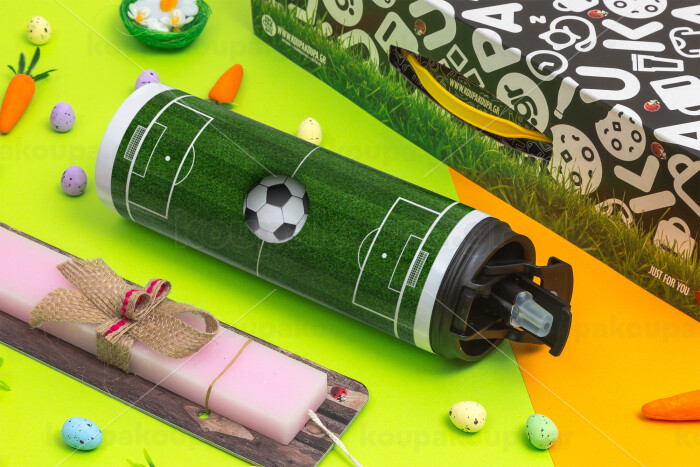 Soccer field, Γήπεδο ποδοσφαίρου, Easter candle,Travel Tumbler 2 Lids, with metal straw & cleaning brush & aromatic flat candle (30cm) (PINK)
