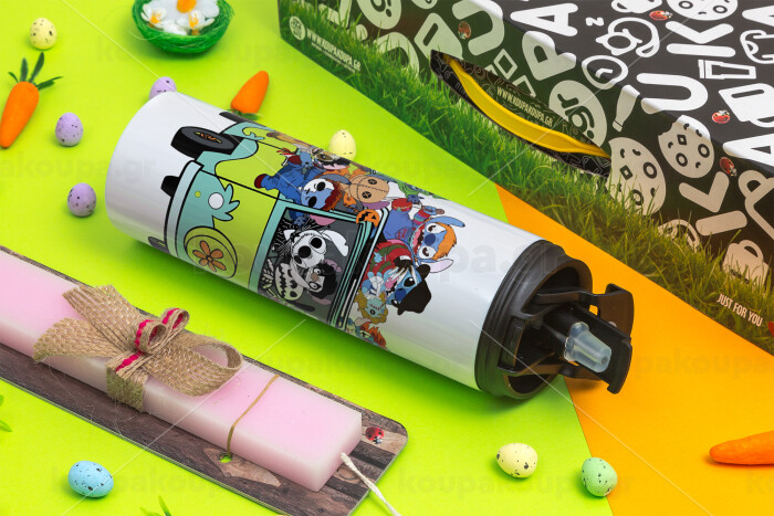 Stitch Halloween scooby car, Easter candle,Travel Tumbler 2 Lids, with metal straw & cleaning brush & aromatic flat candle (30cm) (PINK)
