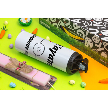 Σ΄αγαπώ τόοοοσο πολύ (Αγόρι)!!!, Easter candle,Travel Tumbler 2 Lids, with metal straw & cleaning brush & aromatic flat candle (30cm) (PINK)