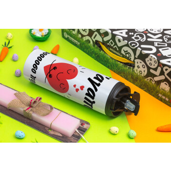 Σ΄αγαπώ τόοοοσο πολύ καρδιά, Easter candle,Travel Tumbler 2 Lids, with metal straw & cleaning brush & aromatic flat candle (30cm) (PINK)