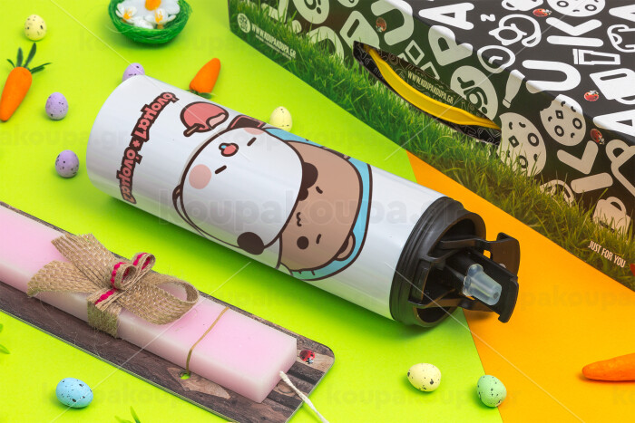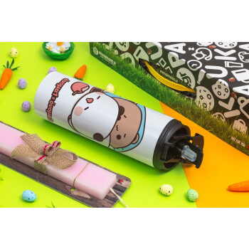 bubu + dudu, Easter candle,Travel Tumbler 2 Lids, with metal straw & cleaning brush & aromatic flat candle (30cm) (PINK)