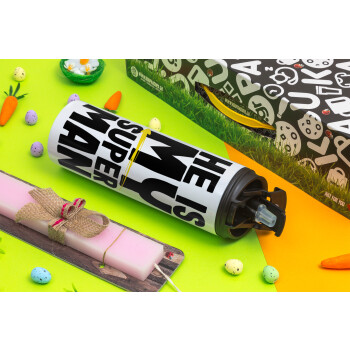 He is my superman, Easter candle,Travel Tumbler 2 Lids, with metal straw & cleaning brush & aromatic flat candle (30cm) (PINK)