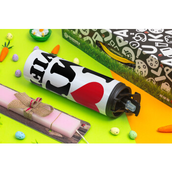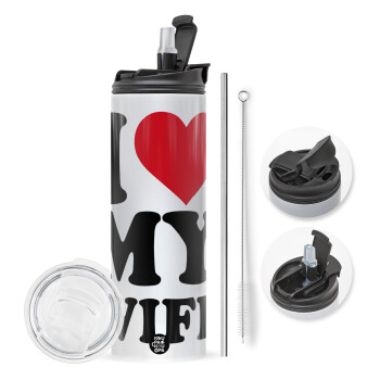 I Love my Wife, Easter candle,Travel Tumbler 2 Lids, with metal straw & cleaning brush & aromatic flat candle (30cm) (PINK)
