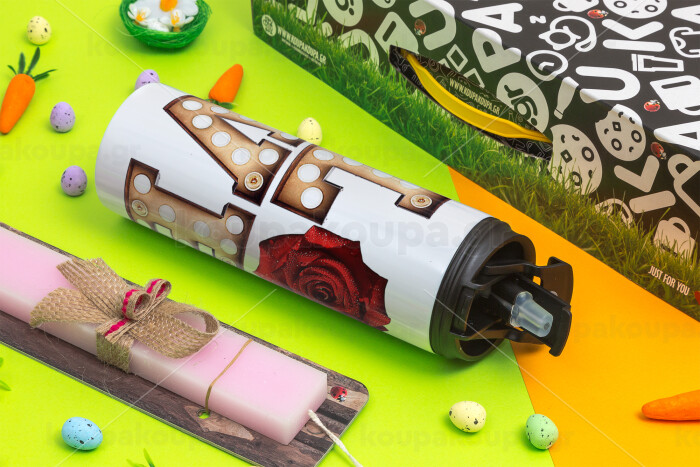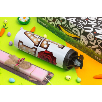 Love lights and roses, Easter candle,Travel Tumbler 2 Lids, with metal straw & cleaning brush & aromatic flat candle (30cm) (PINK)