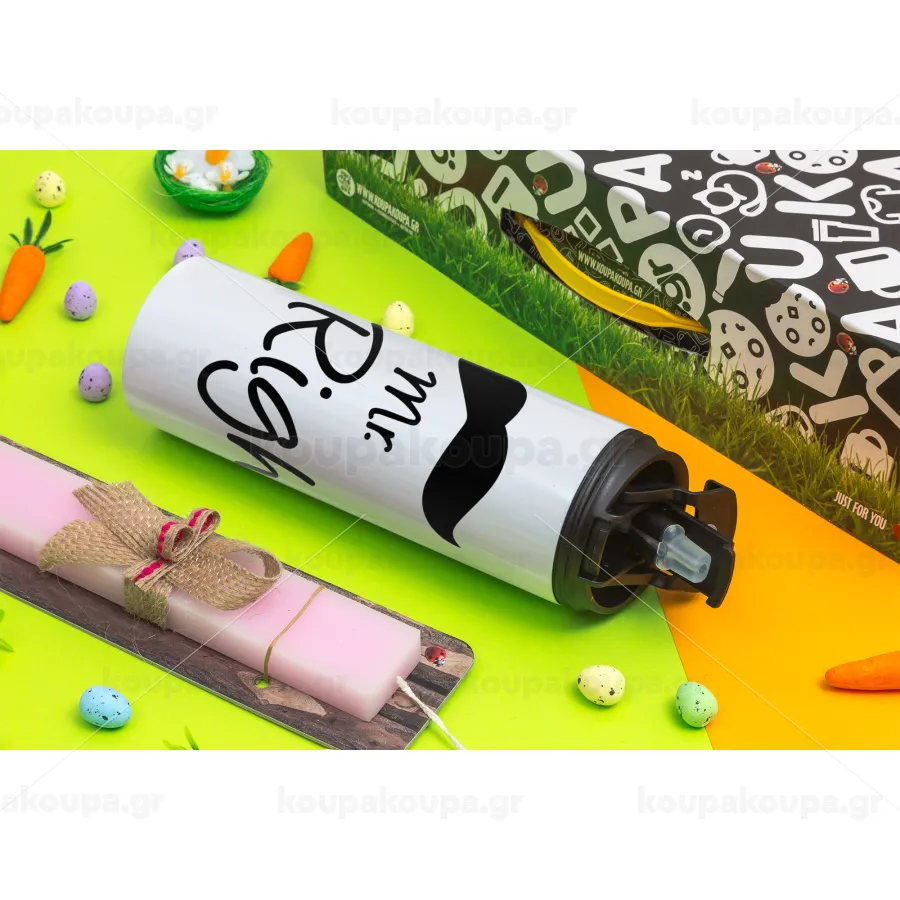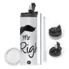 Mr right Mustache, Easter candle,Travel Tumbler 2 Lids, with metal straw & cleaning brush & aromatic flat candle (30cm) (PINK)
