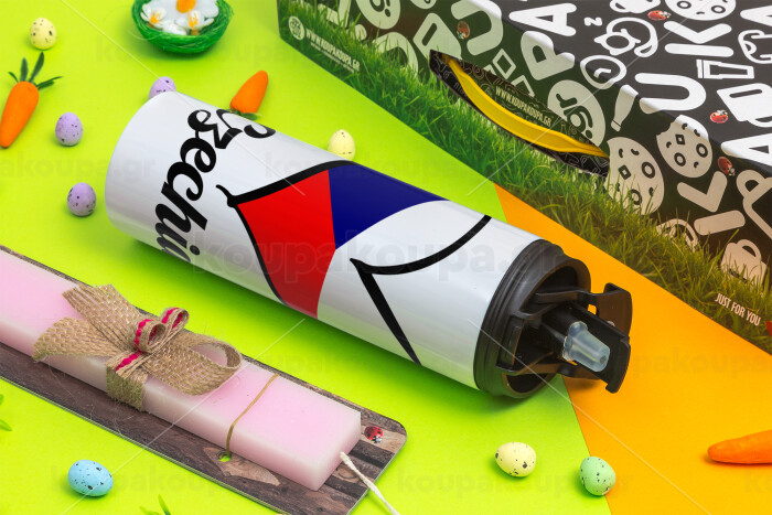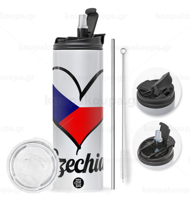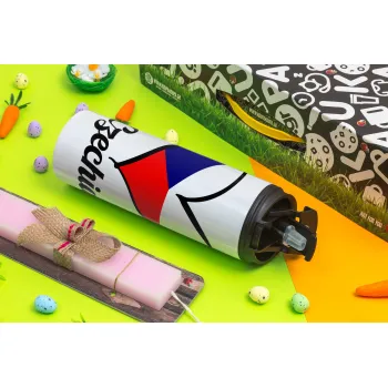 Czechia flag, Easter candle,Travel Tumbler 2 Lids, with metal straw & cleaning brush & aromatic flat candle (30cm) (PINK)