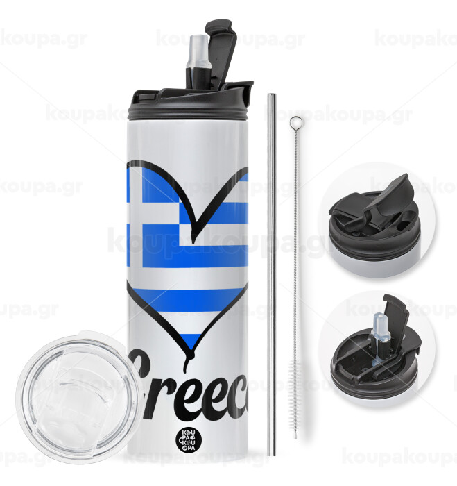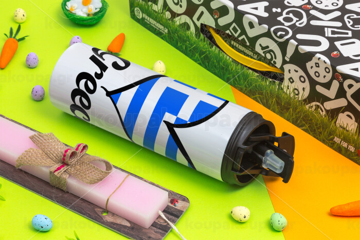 Greece flag, Easter candle,Travel Tumbler 2 Lids, with metal straw & cleaning brush & aromatic flat candle (30cm) (PINK)