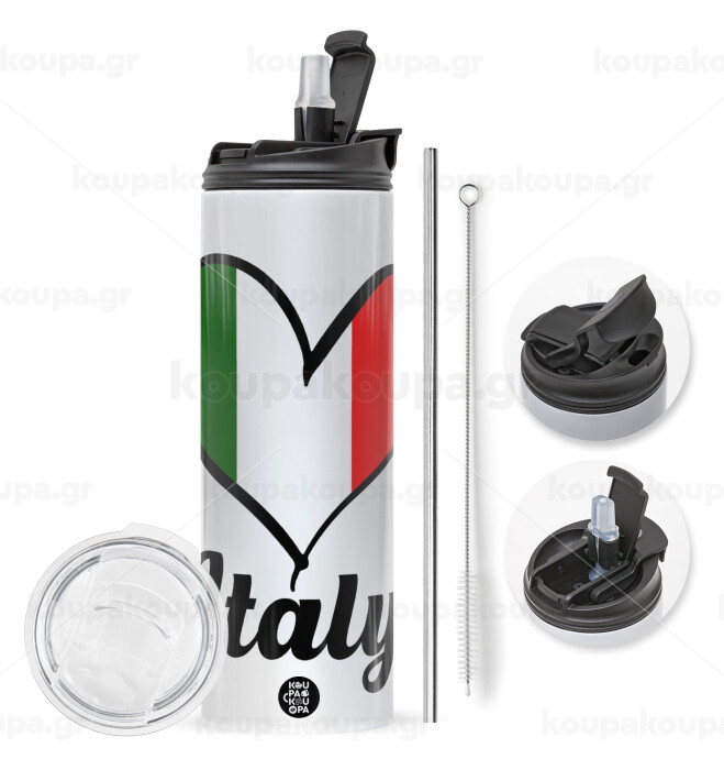 Italy flag, Easter candle,Travel Tumbler 2 Lids, with metal straw & cleaning brush & aromatic flat candle (30cm) (PINK)