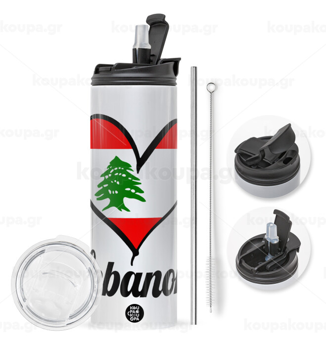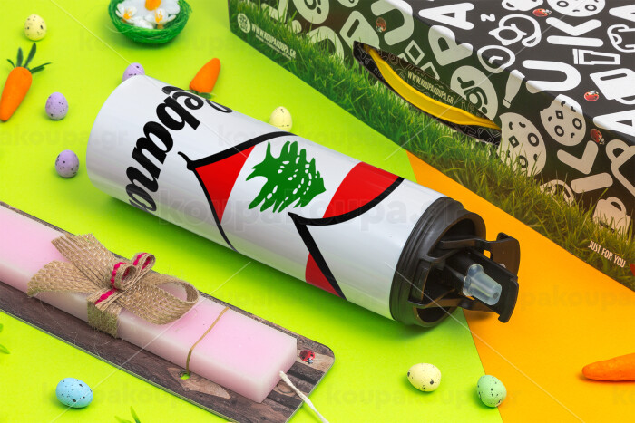 Lebanon flag, Easter candle,Travel Tumbler 2 Lids, with metal straw & cleaning brush & aromatic flat candle (30cm) (PINK)