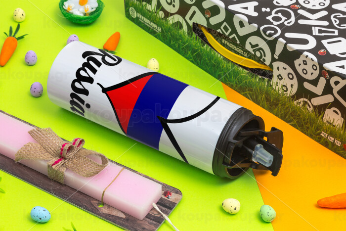 Russia flag, Easter candle,Travel Tumbler 2 Lids, with metal straw & cleaning brush & aromatic flat candle (30cm) (PINK)