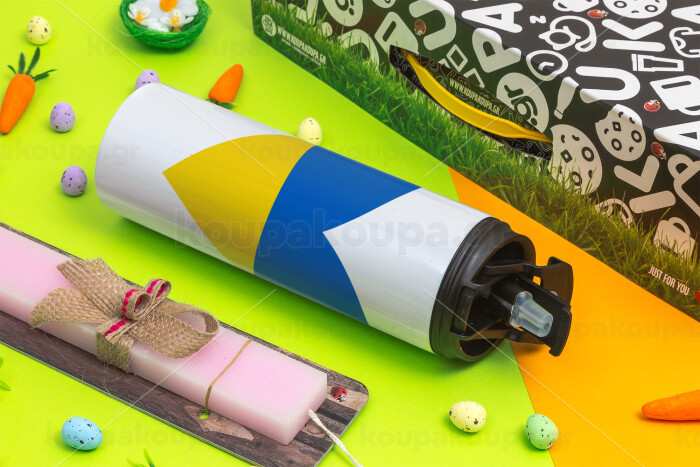UKRAINE heart, Easter candle,Travel Tumbler 2 Lids, with metal straw & cleaning brush & aromatic flat candle (30cm) (PINK)