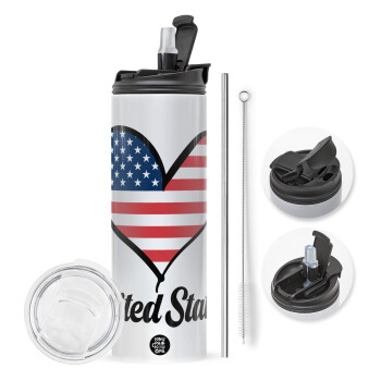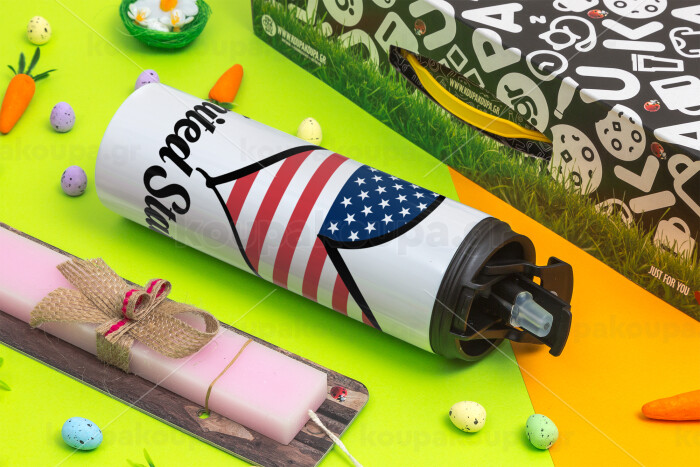 USA flag, Easter candle,Travel Tumbler 2 Lids, with metal straw & cleaning brush & aromatic flat candle (30cm) (PINK)