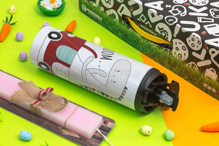 Βρουμ βρουμ, Easter candle,Travel Tumbler 2 Lids, with metal straw & cleaning brush & aromatic flat candle (30cm) (PINK)