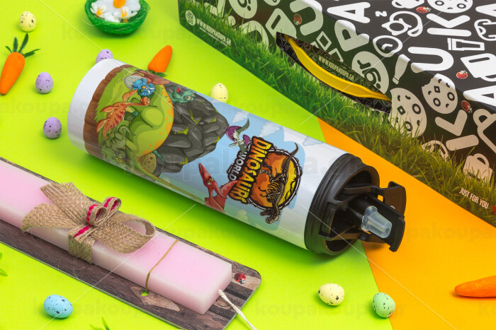 Dinosaur's world, Easter candle,Travel Tumbler 2 Lids, with metal straw & cleaning brush & aromatic flat candle (30cm) (PINK)
